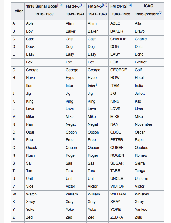 Phonetic Alphabets are International systems to make certain letters are correctly understood over different types of radio communication. An easy to understand word is assigned to each letter. It was devised as a standardized representation of the sounds (phonemes) of spoken language.