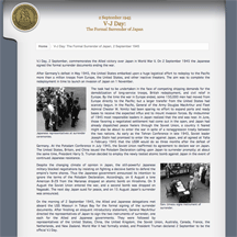 "VJ Day, 2 September, commemorates the Allied victory over Japan in World War II. On 2 September 1945 the Japanese signed the formal surrender documents ending the war.